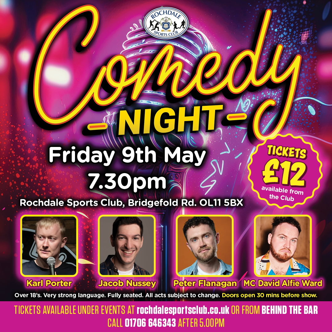 ? Get ready to laugh until your sides ache at Rochdale Sports Club’s Comedy Night! ?